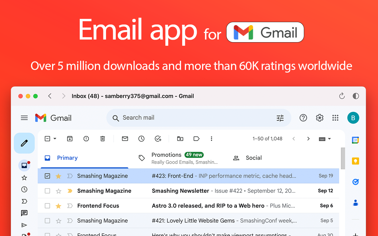 Enjoy all the advantages of accessing Gmail, separately from your browser.
